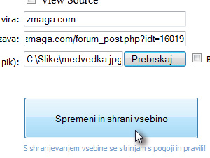 V polje ime strani napišite zmaga.com, polje nižje prilepite prej shranjeno povezavo in preko gumba Prebrskaj dodajte shranjeno sliko.