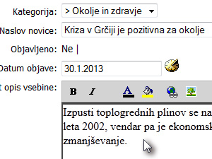 Izberite primerno kategorijo, napišite naslov ter spodaj enostaven opis novice.