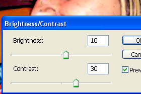 Brightness določite 10, Contrast 30 in kliknite na gumb OK. |