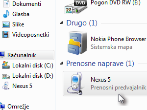 ![]() V seznamu na desni bi sedaj morali pod kategorijo Prenosne naprave zagledati ime vašega prenosnega telefon.