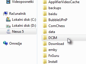 ![]() Prikazal se bo seznam vseh map in datotek, ki se nahajajo na internem pomnilniku vašega telefona oz. na SD kartici. V mapi DCIM se npr. običajno nahajajo slike. |