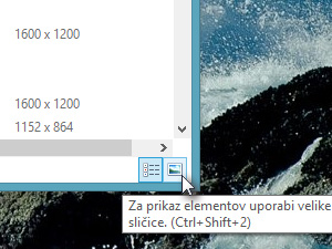 To lahko hitro spremenite spodaj desno s klikom na ikono Za prikaz elementov uporabi večje sličice.