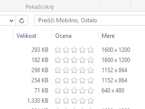 V mojem primeru sedaj vidim velikost, oceno, mere datoteke.