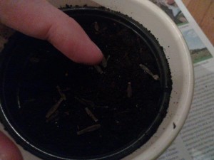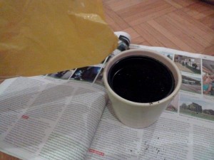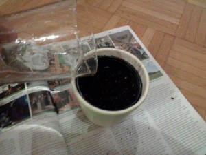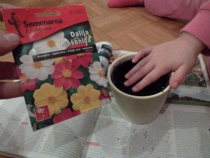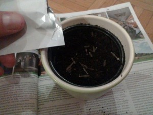 Najprej pripravimo vse potrebno, kar pomeni zemlja, papir za zaščito, loček in seveda semenca.