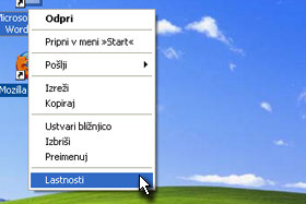 Kliknite na to ikono z desnim miškinim gumbom in izberite Lastnosti.