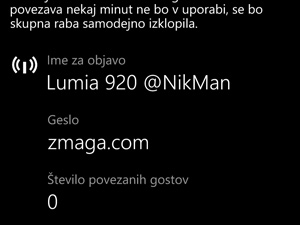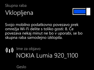 Ko bo vklopljena, se vam bodo podatki za dostop z drugimi napravami pokazali spodaj.