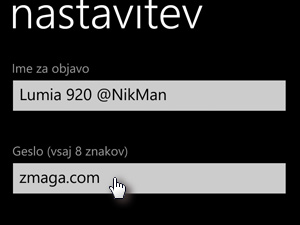 Vpišite poljubno ime za objavo ter geslo in potrdite spremembe.