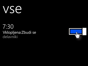 Budilko lahko vklopite in izklopite tako, da tapnete na modro polje zraven budilke.
