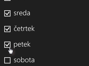 ..., kjer boste izbirali ob katerih dnevih v tednu bo budilka delovala.