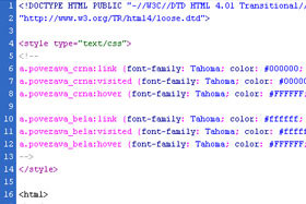 <style type="text/css"> <!-- a.povezava_crna:link {font-family: Tahoma; color: #000000; font-size: 13px; text-decoration: none; } a.povezava_crna:visited {font-family: Tahoma; color: #000000; font-size: 13px; text-decoration: none; } a.povezava_crna:hover {font-family: Tahoma; color: #FFFFFF; font-size: 13px; text-decoration: underline; } a.povezava_bela:link {font-family: Tahoma; color: #ffffff; font-size: 13px; text-decoration: none; } a.povezava_bela:visited {font-family: Tahoma; color: #ffffff; font-size: 13px; text-decoration: none; } a.povezava_bela:hover {font-family: Tahoma; color: #FFFFFF; font-size: 13px; text-decoration: underline; } --> </style> |