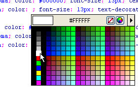 Pritisnite tipko SPACE (presledek) in Dreamweaver bo prikazal paleto barv.