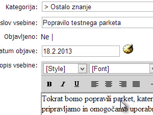 Sedaj poleg slik obrazložite vaše delo in končajte delo s klikom na gumb Spremeni in shrani vsebino.