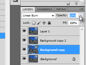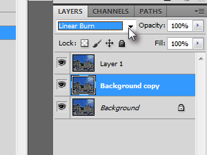 ![]() Layerju nastavite senčenje na Linear Burn (glej sliko).