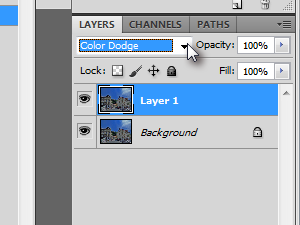 ![]() Novemu layerju nastavite senčenje na Color Dodge (glej sliko). |