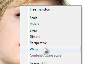 Nato pa z desnim miškinim gumbom kliknite na layer in izberite Warp. |