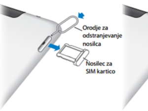 SIM kartica v modelu iPad Wi-Fi + cellular služi za mobilni prenos podatkov. Če micro-SIM kartica še ni vstavljena v iPad ali, če ste zamenjali ponudnika za mobilni prenos podatkov, boste morda morali sami vstaviti ali zamenjati SIM kartico.