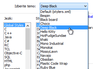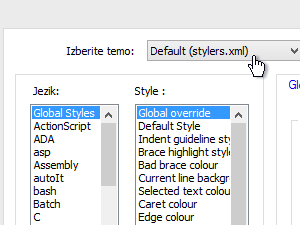 V novem oknu, lahko izbirate že prednaložene teme s klikom na Default (stylers.xml) ...