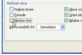 Potem pa v tem oknu odkljukajte Mrežne črte (glej sliko).