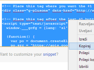 Ko se vam bo spletna stran prikazala, lahko preko spletnega vmesnika začete urejati Google+ gumb.