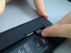 Sedaj vzemite spominsko kartico in jo vstavite v primeren prostor (glej sliko).