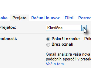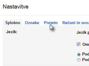 ![]() V nastavitvah kliknite na zavihek Prejeto. |