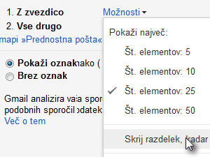 ![]() Potem pa pri prvi možnosti 1. Z zvezdico nastavite Skrij razdelek, kadar je prazen. |