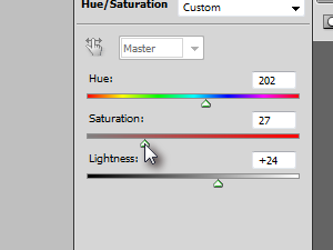 Na koncu pa sem se še malo poigral z nastavitvami Saturation in Lightness, da sem dobil čim bolj podoben efekt, kot ga vidimo pri drugih sličicah.