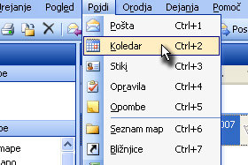 Kliknite na Pojdi in izberite Koledar (bližnjica je tipka CTRL + 2).