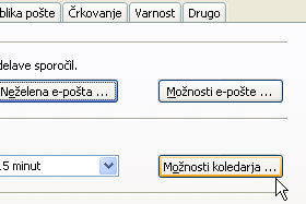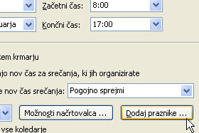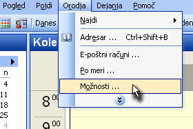 Odpre se novo okno z dodatnimi možnostmi za koledar.