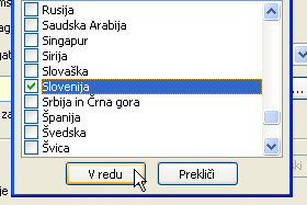 Poiščite in označite državo Slovenijo in kliknite na gumb V redu. Potrdite na gumb V redu tolikokrat, da zaprete vsa okna. |