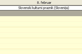 Praznki so dodani in če se premaknete na 8 februar, boste opazili, da je Slovenski kulturni praznik vnešen in vas bo spomnil vsako leto na njega.