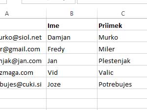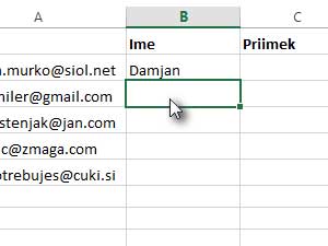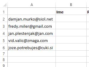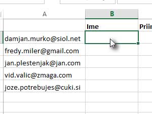 Se pravi, vpišite e-poštne naslove v prvi stolpec.