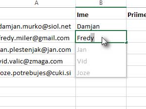 Potem pa v drugi celici ponovno začnite prepisovati in opazili boste, da vam Excel ponuja avtomatsko zapolnitev vseh ostalih celic spodaj (glej sliko).