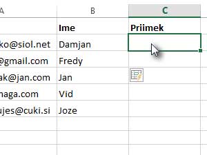 Sedaj označite še stolpec s priimki ...
