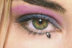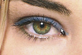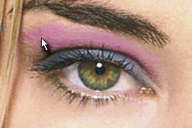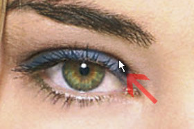 Začnite korak za korakom barvati zgornji del veke nad očesom (glej sliko).