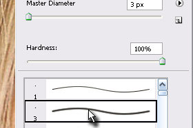 Kliknite z desnim miškinim gumbom na sliko in določite tokrat majhen Master Diameter in Hardness nastavite 100%. Jaz sem določil Master Diameter 3 px. Pritisnite tipko ESC, da zaprete okno. |