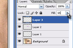 V paleti layerjev tretjemu layerju določite Fill 65.