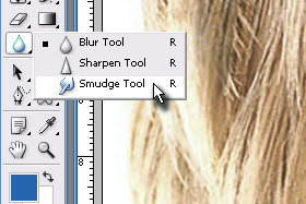 Na orodju Blur Tool (bližnjica je tipka R) držite miško in prikazala se vam bodo ostala orodja. |