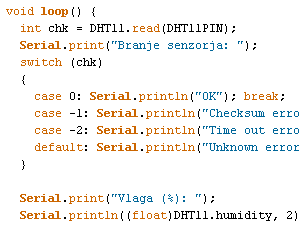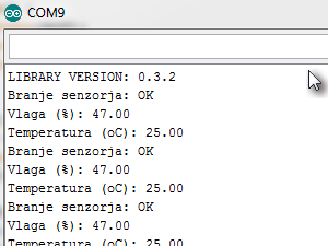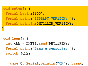 ![]() V okviru funkcije setup omogočimo izpisovanje na serijski izhod ter izpišemo verzijo knjižnice. |