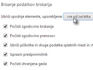 ![]() Izbriši spodnje elemente, uporabljene preko izbirnika določite Vse od začetka in spodaj označite vse možnosti (glej sliko). |