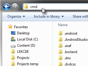 V naslovno vrstico vpišite cmd in pritisnite tipko Enter. |