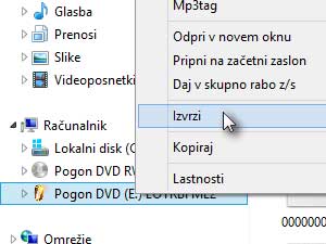 Ko novega pogona ne boste več potrebovali, kliknite nanj z desnim miškinim gumbom in izberite Izvrzi.