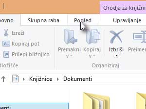 Odprite raziskovalca in se postavite v neko mapo, kjer se nahaja več datotek in map.