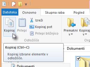 Sedaj pa se samo z miško premaknite nad mapo ali datoteko in jo označite (glej sliko).