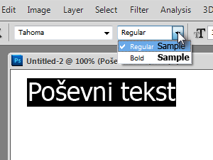 Kot vidimo imamo privzeto na voljo samo možnost navadnega in poudarjenega teksta. |