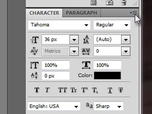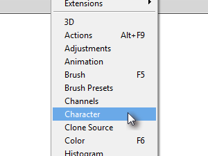 V desnem zgornjem kotu Character okna kliknemo ikono za dodatne možnosti.
