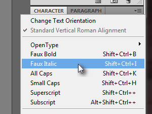 Tukaj izberemo možnost Faux Italic.