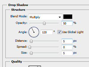Temu layerju z efektom določite senčenje na Multiply in Opacity na okoli 50% (glej sliko).