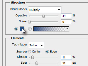 Nato kliknite na Inner Glow ter nastavite tudi tukaj podobne vrednosti.