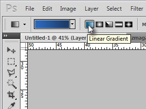 Zgoraj v orodni vrstici imejte nastavljeno Linear Gradient in preliv iz temne v svetlo barvo (glej sliko).